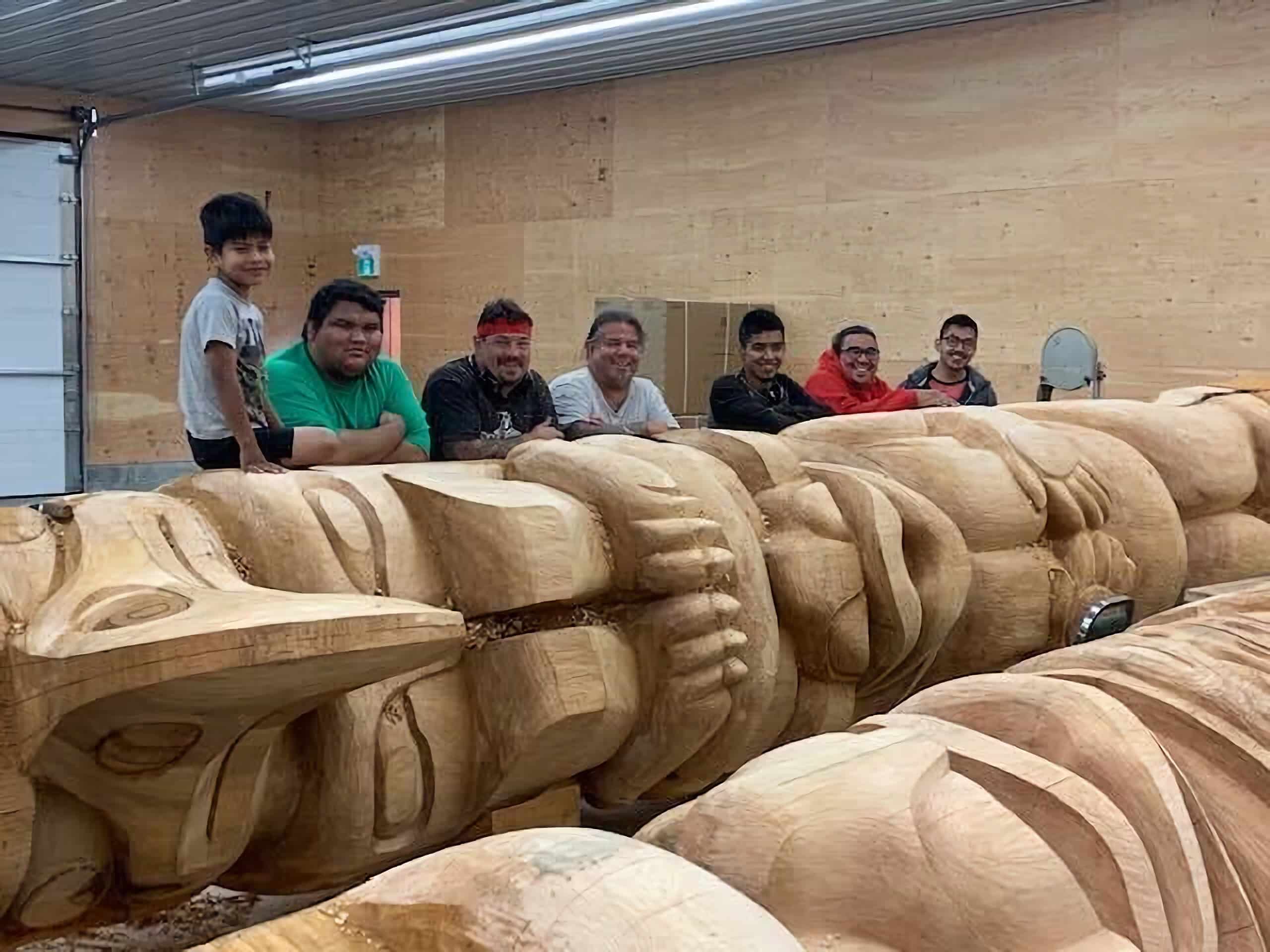 With support from the Treaty Office, the Bighouse Society created subcommittees to engage with families on the carving of the Crossbeams and posts.